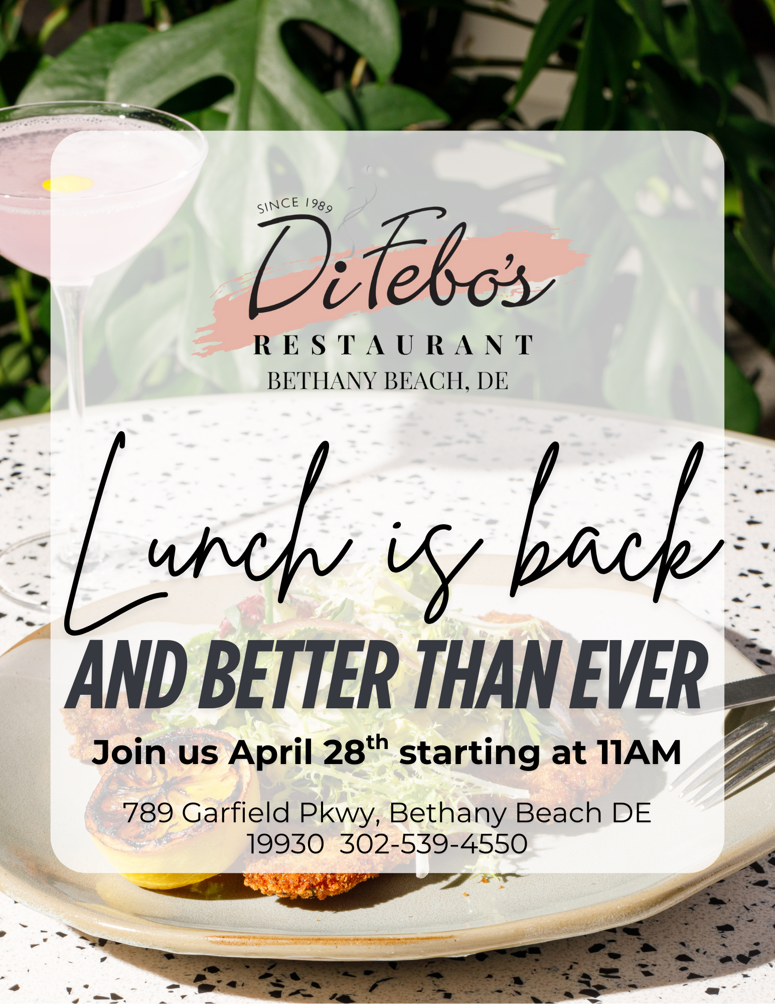 Lisa DiFebo, born in Wilmington, Delaware, was deeply influenced by her family's culinary background. Her father’s restaurant and her uncle's fish market provided her with a rich foundation in Italian and seafood cuisine. In 1987, Lisa moved to the Bethany/Rehoboth area, where her passion for cooking led her to open her own deli in an old beach house. With the help of her family, she introduced their traditional Italian dishes, making DiFebo’s Café & Deli, which opened in 1989, an instant hit.